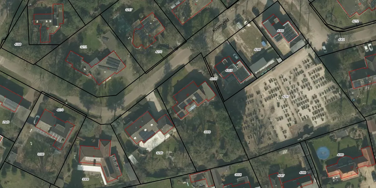 Kromveld 10 is gelegen op kadastraal perceel DNE00C3309. Deze kadastrale aanduiding is uniek en wordt gebruikt door het Kadaster om eigendomsrechten en andere zakelijke rechten vast te leggen. Het perceel maakt onderdeel uit van de kadastrale gemeente Deurne.