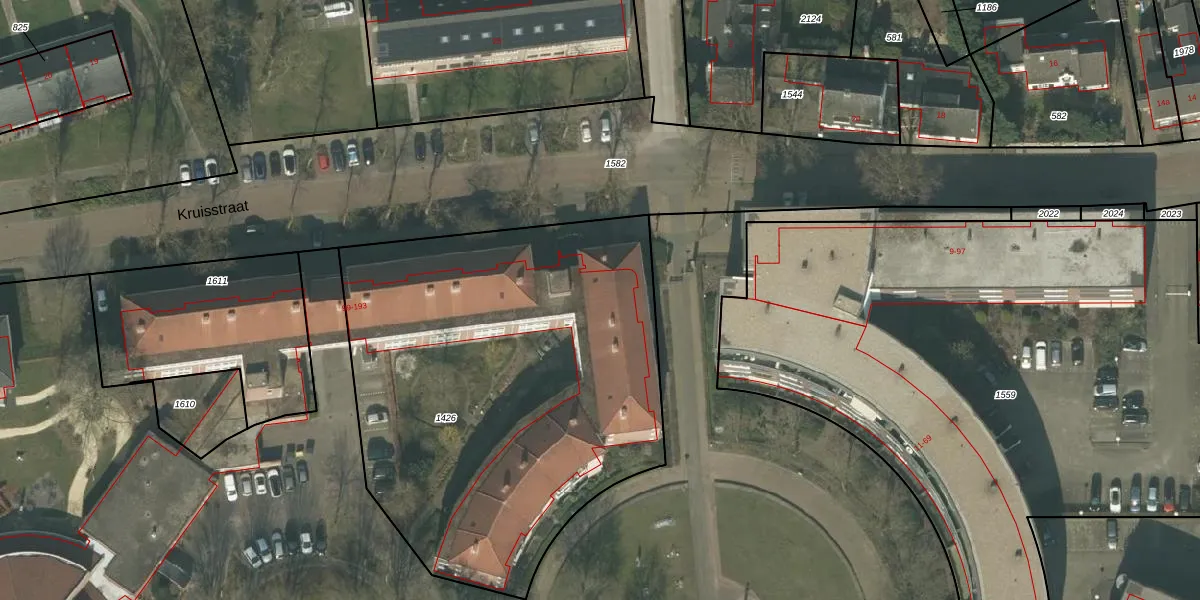 Het perceel waarop Kruisstraat 153 staat heeft een oppervlakte van 2600 m². Dit is een zeer groot perceel. De perceeloppervlakte wordt geregistreerd door het Kadaster. Gedetailleerde informatie over de maten van dit perceel kunt u vinden in het rapport Kadastrale kaart met maatvoering van Kruisstraat 153.