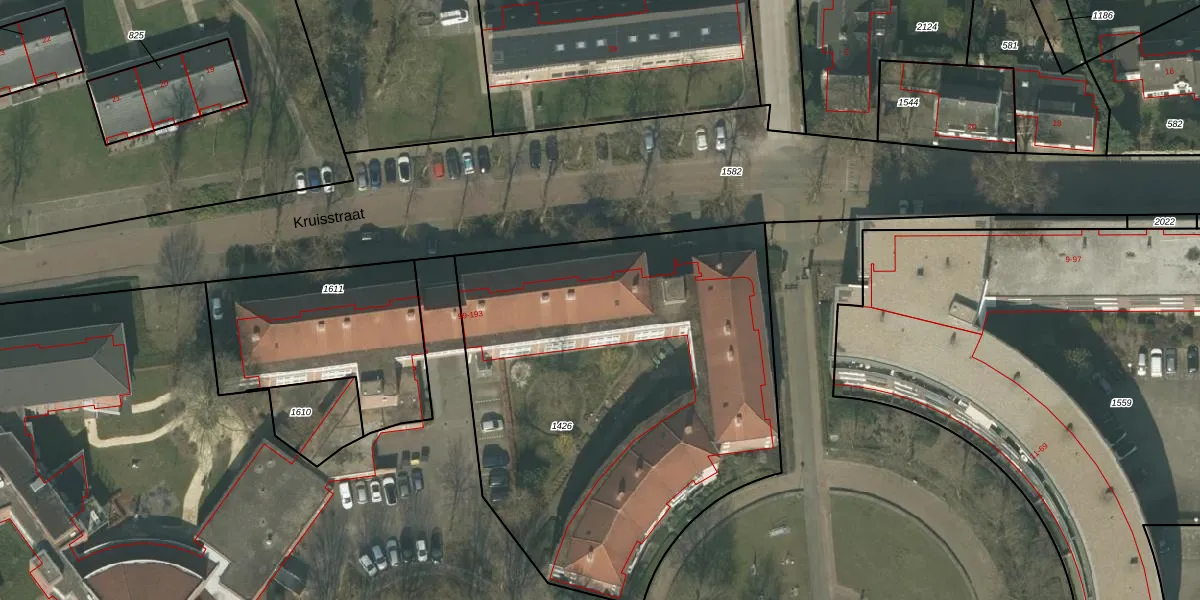 Het perceel waarop Kruisstraat 163 staat heeft een oppervlakte van 2600 m². Dit is een zeer groot perceel. De perceeloppervlakte wordt geregistreerd door het Kadaster. Gedetailleerde informatie over de maten van dit perceel kunt u vinden in het rapport Kadastrale kaart met maatvoering van Kruisstraat 163.