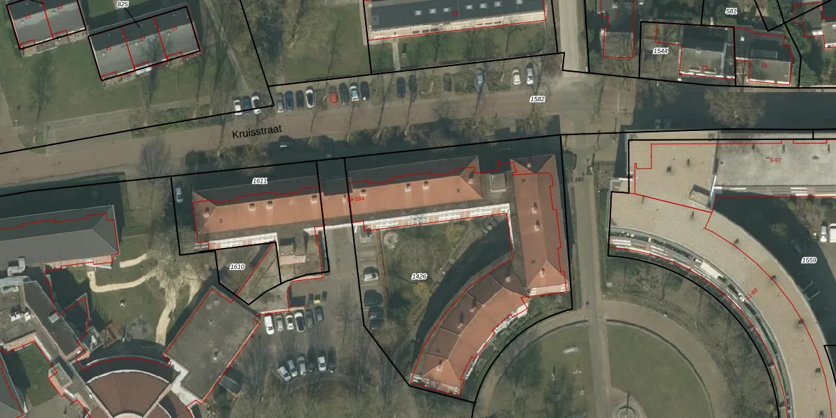 Kruisstraat 165 is gelegen op kadastraal perceel DNE00K1426. Deze kadastrale aanduiding is uniek en wordt gebruikt door het Kadaster om eigendomsrechten en andere zakelijke rechten vast te leggen. Het perceel maakt onderdeel uit van de kadastrale gemeente Deurne.