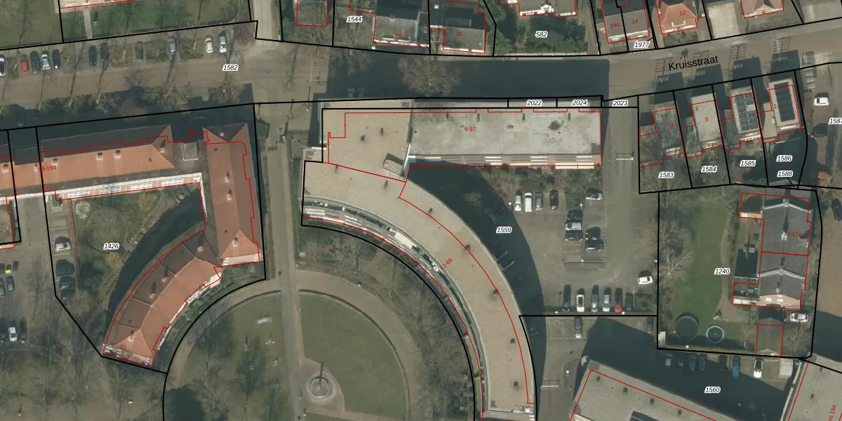 Het perceel waarop Kruisstraat 19 staat heeft een oppervlakte van 3889 m². Dit is een zeer groot perceel. De perceeloppervlakte wordt geregistreerd door het Kadaster. Gedetailleerde informatie over de maten van dit perceel kunt u vinden in het rapport Kadastrale kaart met maatvoering van Kruisstraat 19.