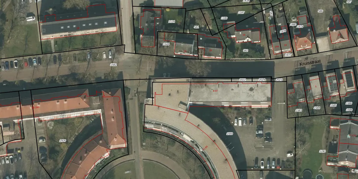 Het perceel waarop Kruisstraat 31 staat heeft een oppervlakte van 3889 m². Dit is een zeer groot perceel. De perceeloppervlakte wordt geregistreerd door het Kadaster. Gedetailleerde informatie over de maten van dit perceel kunt u vinden in het rapport Kadastrale kaart met maatvoering van Kruisstraat 31.