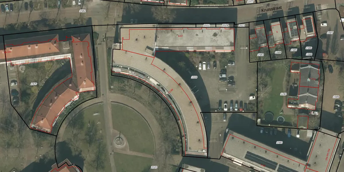 Het perceel waarop Kruisstraat 47 staat heeft een oppervlakte van 3889 m². Dit is een zeer groot perceel. De perceeloppervlakte wordt geregistreerd door het Kadaster. Gedetailleerde informatie over de maten van dit perceel kunt u vinden in het rapport Kadastrale kaart met maatvoering van Kruisstraat 47.