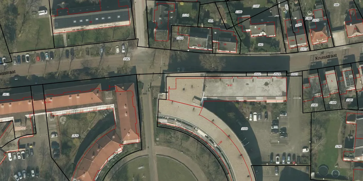 Het perceel waarop Kruisstraat 55 staat heeft een oppervlakte van 3889 m². Dit is een zeer groot perceel. De perceeloppervlakte wordt geregistreerd door het Kadaster. Gedetailleerde informatie over de maten van dit perceel kunt u vinden in het rapport Kadastrale kaart met maatvoering van Kruisstraat 55.