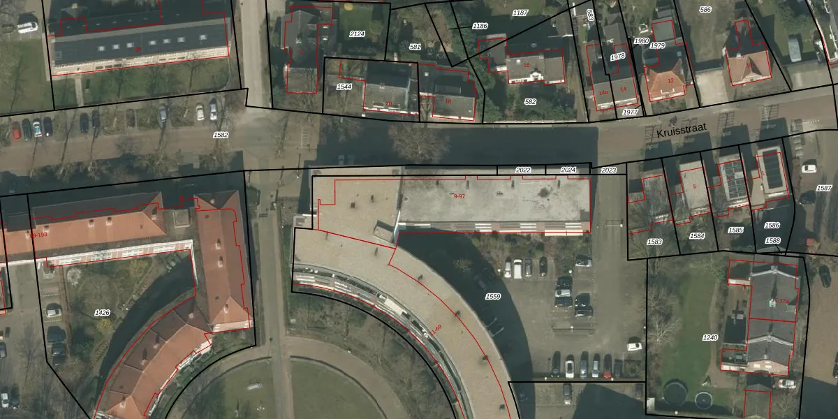 Het perceel waarop Kruisstraat 61 staat heeft een oppervlakte van 3889 m². Dit is een zeer groot perceel. De perceeloppervlakte wordt geregistreerd door het Kadaster. Gedetailleerde informatie over de maten van dit perceel kunt u vinden in het rapport Kadastrale kaart met maatvoering van Kruisstraat 61.