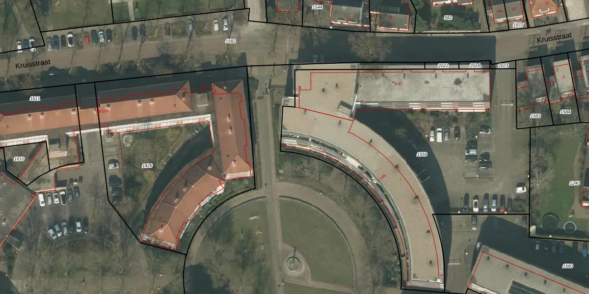 Het perceel waarop Kruisstraat 85 staat heeft een oppervlakte van 3889 m². Dit is een zeer groot perceel. De perceeloppervlakte wordt geregistreerd door het Kadaster. Gedetailleerde informatie over de maten van dit perceel kunt u vinden in het rapport Kadastrale kaart met maatvoering van Kruisstraat 85.
