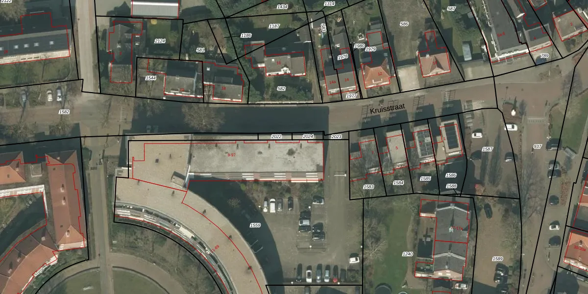 Het perceel waarop Kruisstraat 9 staat heeft een oppervlakte van 3889 m². Dit is een zeer groot perceel. De perceeloppervlakte wordt geregistreerd door het Kadaster. Gedetailleerde informatie over de maten van dit perceel kunt u vinden in het rapport Kadastrale kaart met maatvoering van Kruisstraat 9.