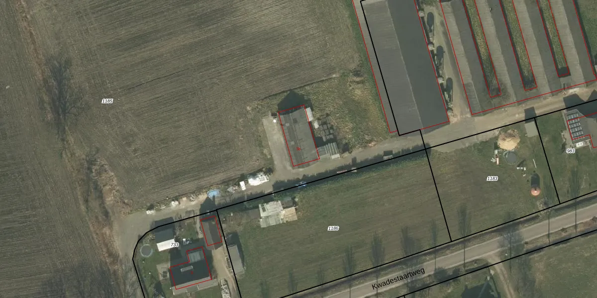 Het perceel waarop Kwadestaartweg 3-b staat heeft een oppervlakte van 2,1 ha. Dit is een zeer groot perceel. De perceeloppervlakte wordt geregistreerd door het Kadaster. Gedetailleerde informatie over de maten van dit perceel kunt u vinden in het rapport Kadastrale kaart met maatvoering van Kwadestaartweg 3-b.