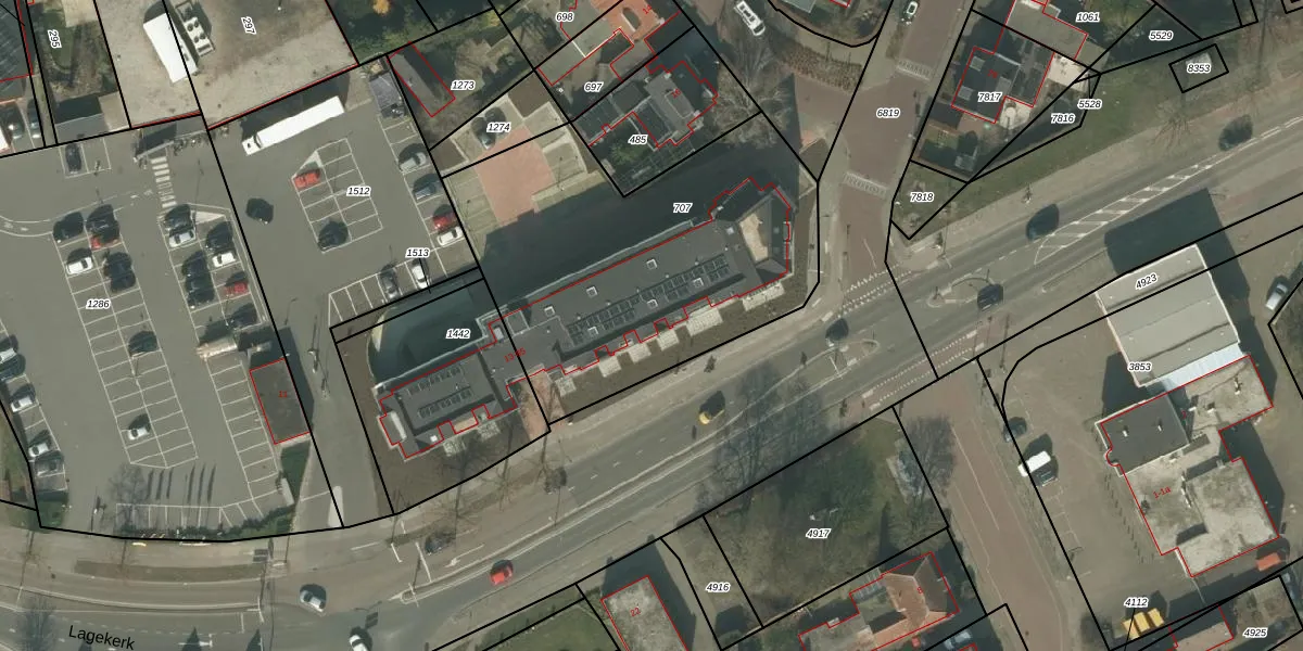 Het perceel waarop Lagekerk 25 staat heeft een oppervlakte van 1705 m². Dit is een zeer groot perceel. De perceeloppervlakte wordt geregistreerd door het Kadaster. Gedetailleerde informatie over de maten van dit perceel kunt u vinden in het rapport Kadastrale kaart met maatvoering van Lagekerk 25.