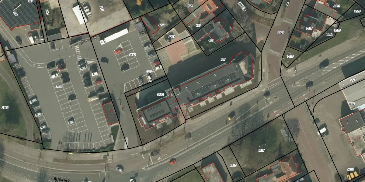 Het perceel waarop Lagekerk 69 staat heeft een oppervlakte van 1705 m². Dit is een zeer groot perceel. De perceeloppervlakte wordt geregistreerd door het Kadaster. Gedetailleerde informatie over de maten van dit perceel kunt u vinden in het rapport Kadastrale kaart met maatvoering van Lagekerk 69.