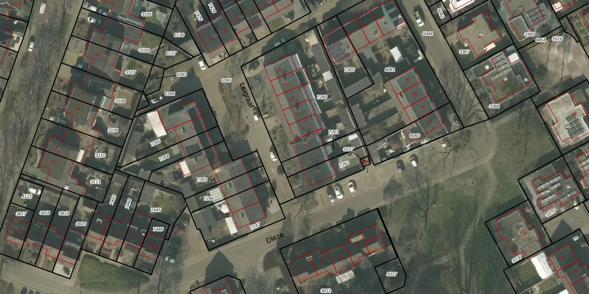 Het perceel waarop Leigraaf 6 staat heeft een oppervlakte van 1058 m². Dit is een zeer groot perceel. De perceeloppervlakte wordt geregistreerd door het Kadaster. Gedetailleerde informatie over de maten van dit perceel kunt u vinden in het rapport Kadastrale kaart met maatvoering van Leigraaf 6.