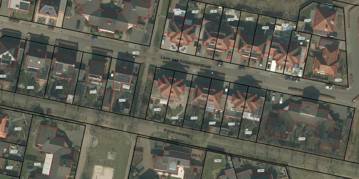 Het perceel waarop Leon van Kelpenaarstraat 13 staat heeft een oppervlakte van 315 m². Dit is een groot perceel. De perceeloppervlakte wordt geregistreerd door het Kadaster. Gedetailleerde informatie over de maten van dit perceel kunt u vinden in het rapport Kadastrale kaart met maatvoering van Leon van Kelpenaarstraat 13.