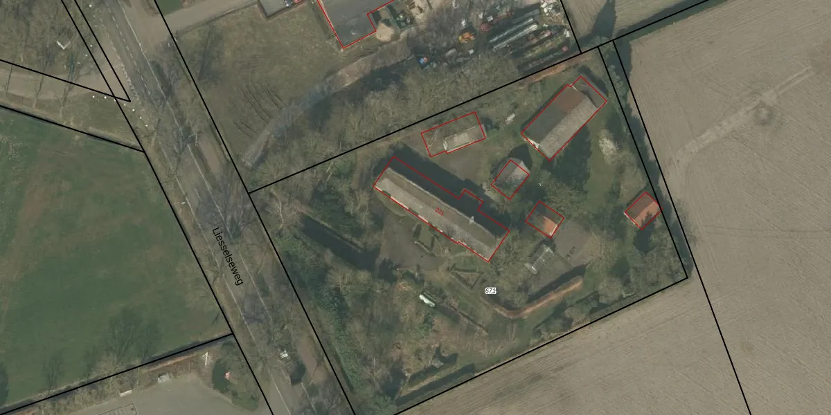 Het perceel waarop Liesselseweg 221 staat heeft een oppervlakte van 5465 m². Dit is een zeer groot perceel. De perceeloppervlakte wordt geregistreerd door het Kadaster. Gedetailleerde informatie over de maten van dit perceel kunt u vinden in het rapport Kadastrale kaart met maatvoering van Liesselseweg 221.
