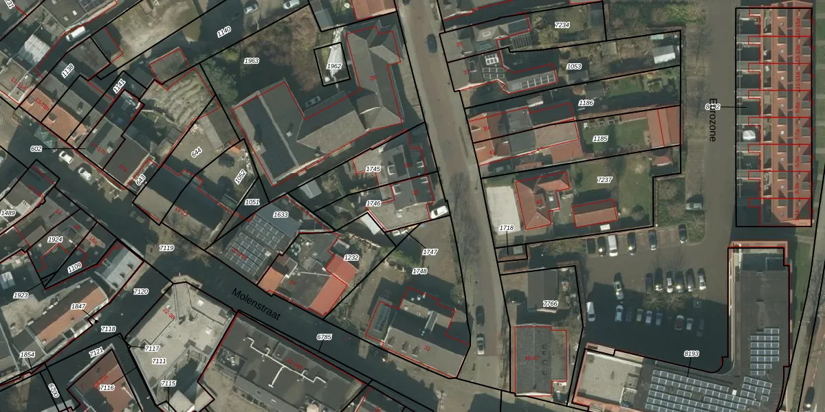 Gebruik de zoekbalk of klik op een perceel voor informatie over de adressen binnen dit perceel.