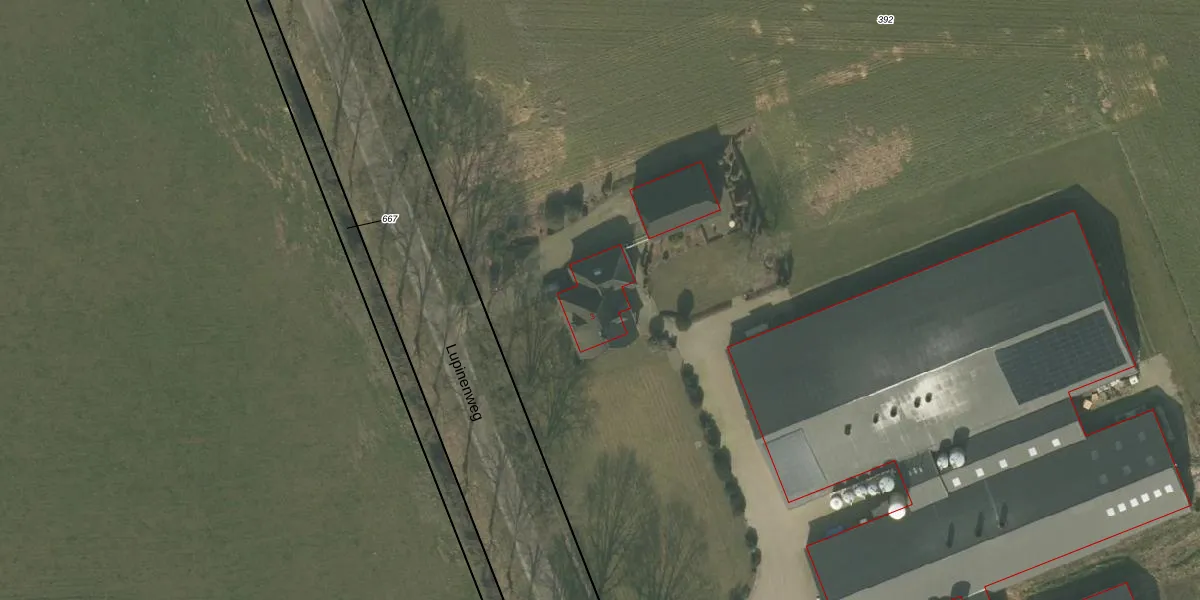 Het perceel waarop Lupinenweg 3 staat heeft een oppervlakte van 4,9 ha. Dit is een zeer groot perceel. De perceeloppervlakte wordt geregistreerd door het Kadaster. Gedetailleerde informatie over de maten van dit perceel kunt u vinden in het rapport Kadastrale kaart met maatvoering van Lupinenweg 3.
