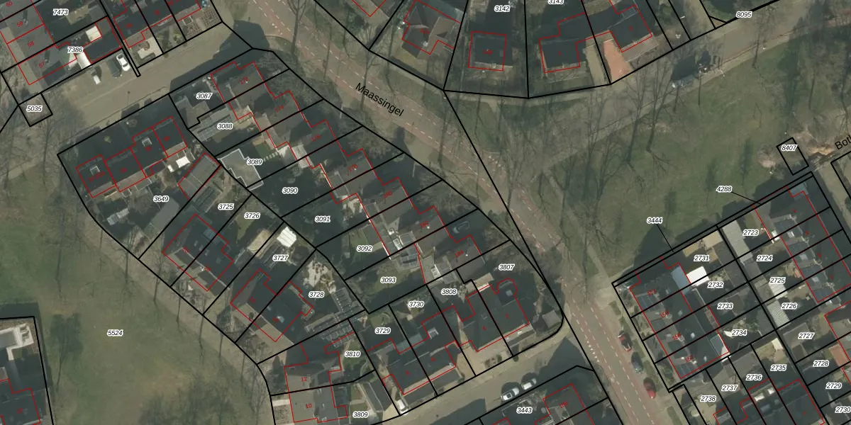 Het perceel waarop Maassingel 182 staat heeft een oppervlakte van 347 m². Dit is een groot perceel. De perceeloppervlakte wordt geregistreerd door het Kadaster. Gedetailleerde informatie over de maten van dit perceel kunt u vinden in het rapport Kadastrale kaart met maatvoering van Maassingel 182.