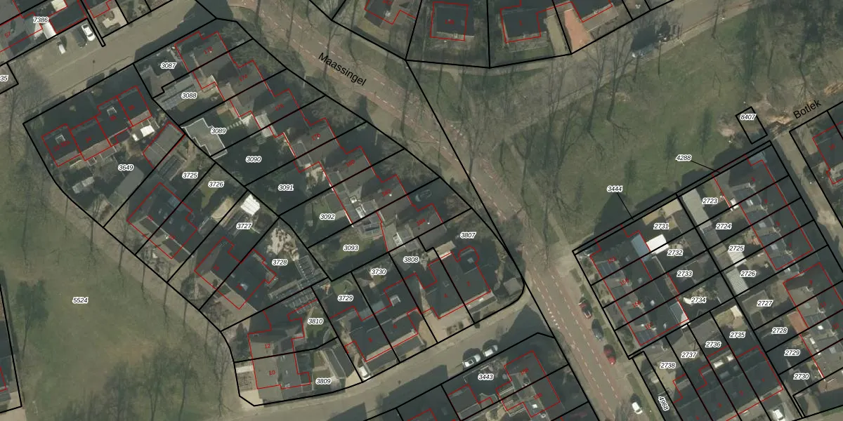 Maassingel 184 is gelegen op kadastraal perceel DNE00L3093. Deze kadastrale aanduiding is uniek en wordt gebruikt door het Kadaster om eigendomsrechten en andere zakelijke rechten vast te leggen. Het perceel maakt onderdeel uit van de kadastrale gemeente Deurne.