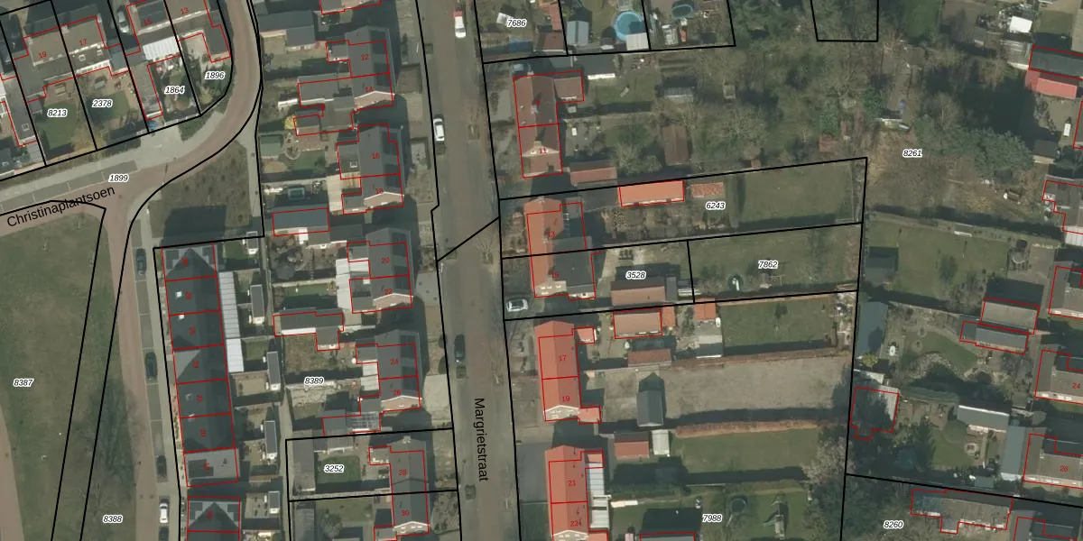 Het perceel waarop Margrietstraat 15 staat heeft een oppervlakte van 399 m². Dit is een groot perceel. De perceeloppervlakte wordt geregistreerd door het Kadaster. Gedetailleerde informatie over de maten van dit perceel kunt u vinden in het rapport Kadastrale kaart met maatvoering van Margrietstraat 15.
