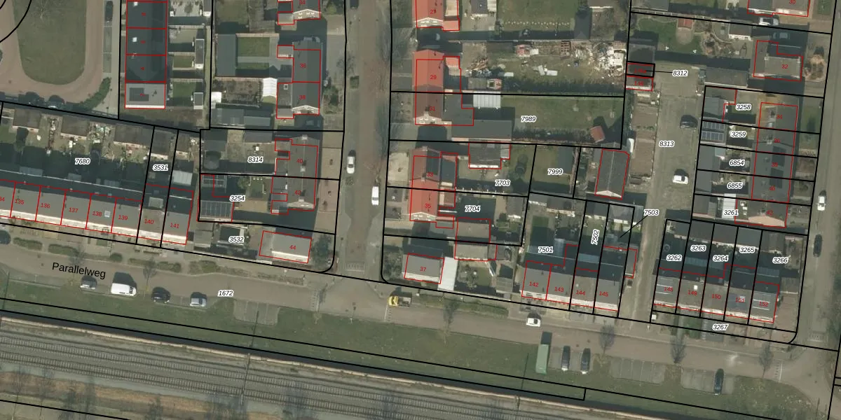 Gebruik de zoekbalk of klik op een perceel voor informatie over de adressen binnen dit perceel.