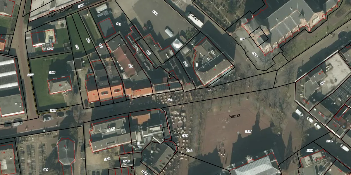 Het perceel waarop Markt 6-a staat heeft een oppervlakte van 54 m². Dit is een klein perceel. De perceeloppervlakte wordt geregistreerd door het Kadaster. Gedetailleerde informatie over de maten van dit perceel kunt u vinden in het rapport Kadastrale kaart met maatvoering van Markt 6-a.
