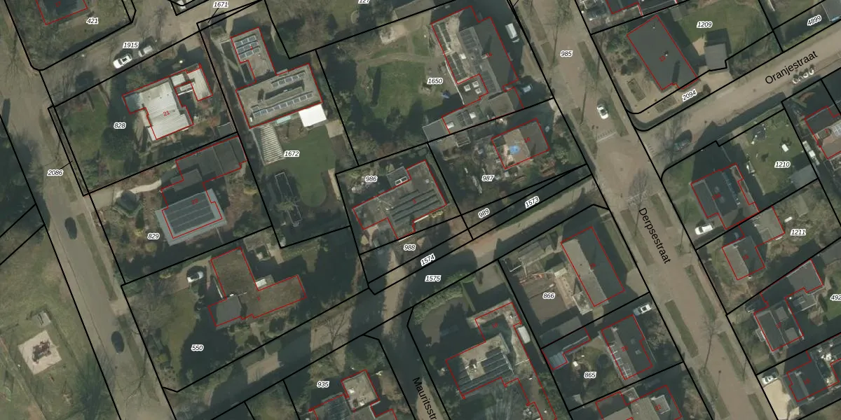 Het perceel waarop Mauritsstraat 3 staat heeft een oppervlakte van 469 m². Dit is een groot perceel. De perceeloppervlakte wordt geregistreerd door het Kadaster. Gedetailleerde informatie over de maten van dit perceel kunt u vinden in het rapport Kadastrale kaart met maatvoering van Mauritsstraat 3.
