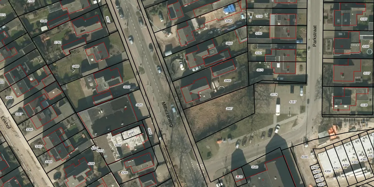 Gebruik de zoekbalk of klik op een perceel voor informatie over de adressen binnen dit perceel.