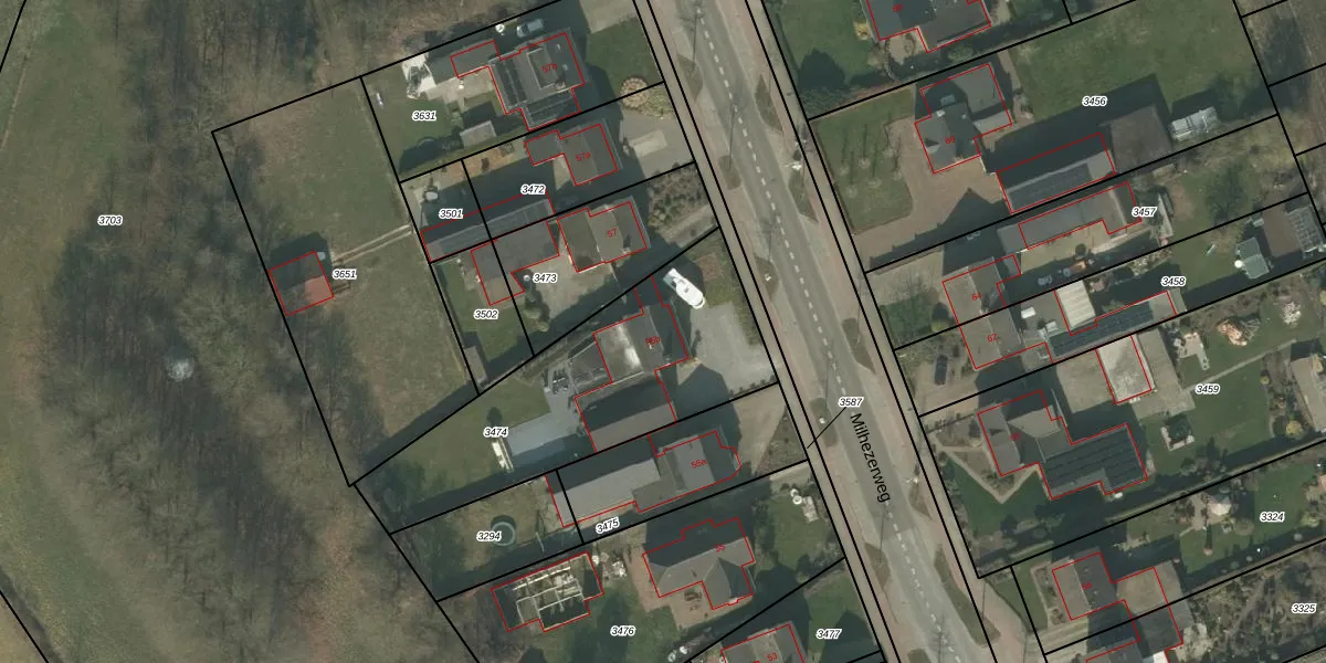 Het perceel waarop Milhezerweg 55-b staat heeft een oppervlakte van 1118 m². Dit is een zeer groot perceel. De perceeloppervlakte wordt geregistreerd door het Kadaster. Gedetailleerde informatie over de maten van dit perceel kunt u vinden in het rapport Kadastrale kaart met maatvoering van Milhezerweg 55-b.