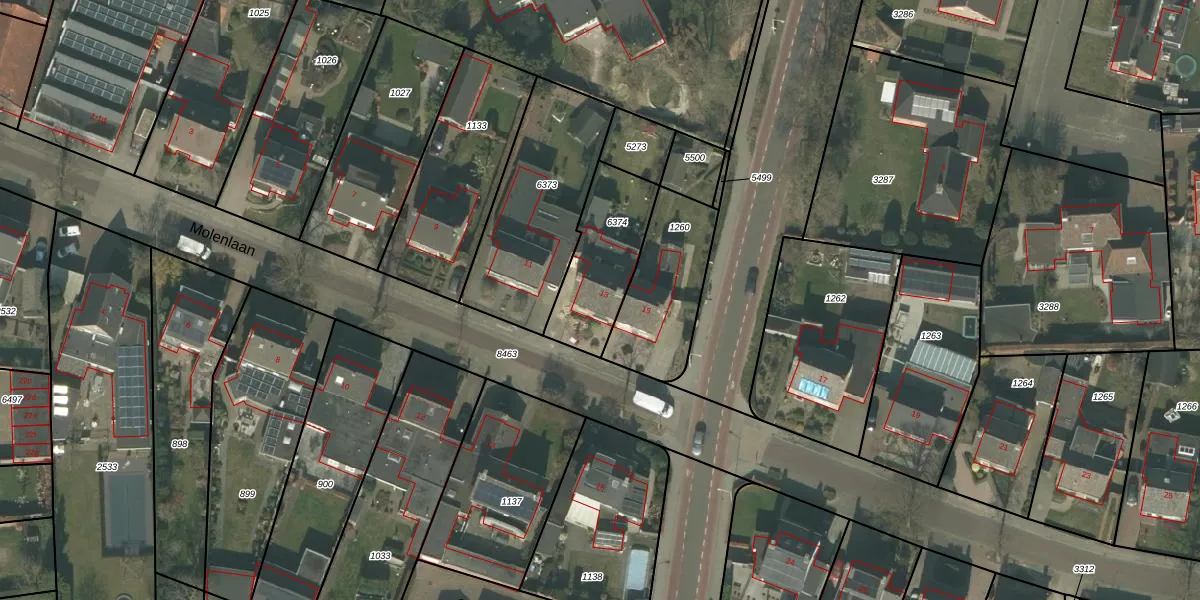 Molenlaan 13 is gelegen op kadastraal perceel DNE00L6374. Deze kadastrale aanduiding is uniek en wordt gebruikt door het Kadaster om eigendomsrechten en andere zakelijke rechten vast te leggen. Het perceel maakt onderdeel uit van de kadastrale gemeente Deurne.
