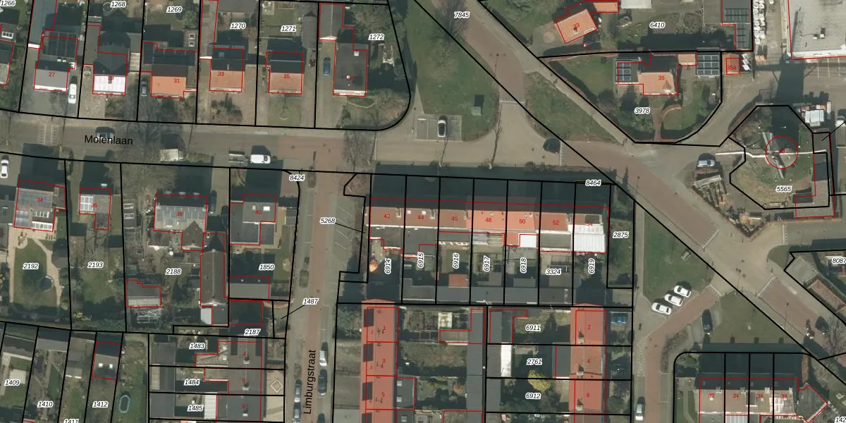 Molenlaan 44 is gelegen op kadastraal perceel DNE00L6915. Deze kadastrale aanduiding is uniek en wordt gebruikt door het Kadaster om eigendomsrechten en andere zakelijke rechten vast te leggen. Het perceel maakt onderdeel uit van de kadastrale gemeente Deurne.