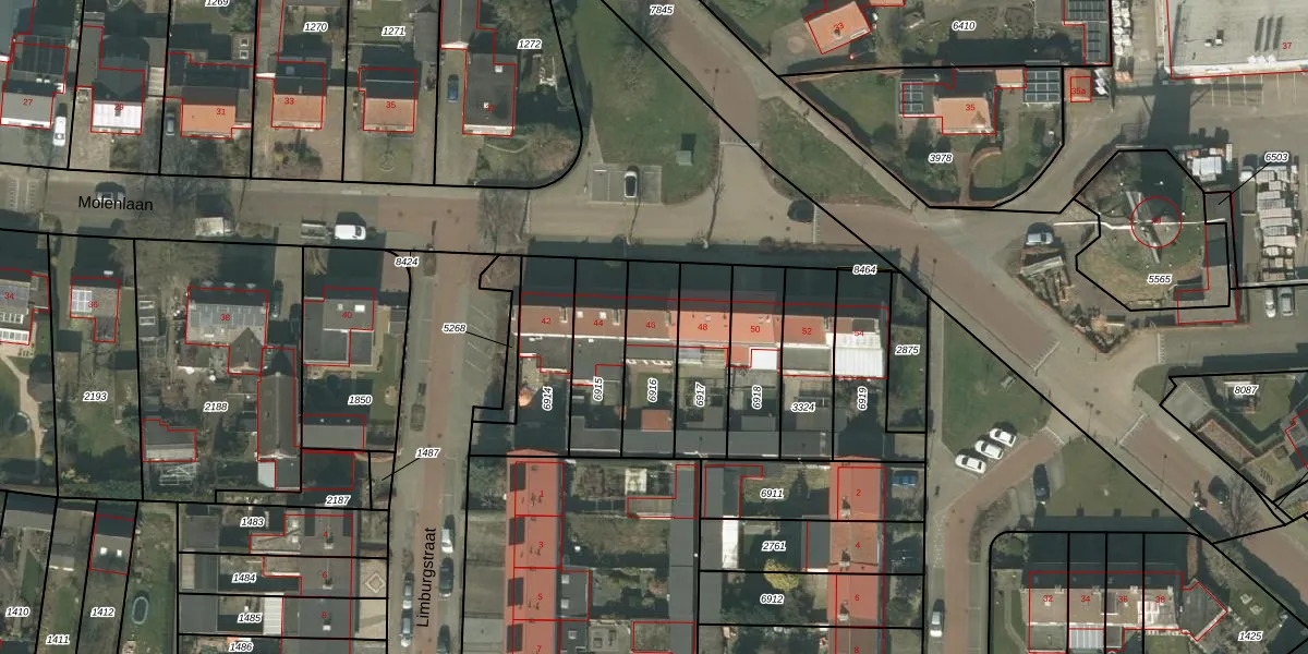 Molenlaan 46 is gelegen op kadastraal perceel DNE00L6916. Deze kadastrale aanduiding is uniek en wordt gebruikt door het Kadaster om eigendomsrechten en andere zakelijke rechten vast te leggen. Het perceel maakt onderdeel uit van de kadastrale gemeente Deurne.
