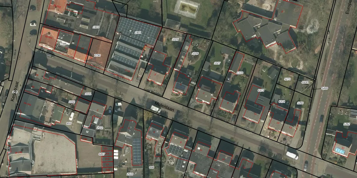 Molenlaan 5 is gelegen op kadastraal perceel DNE00L1026. Deze kadastrale aanduiding is uniek en wordt gebruikt door het Kadaster om eigendomsrechten en andere zakelijke rechten vast te leggen. Het perceel maakt onderdeel uit van de kadastrale gemeente Deurne.