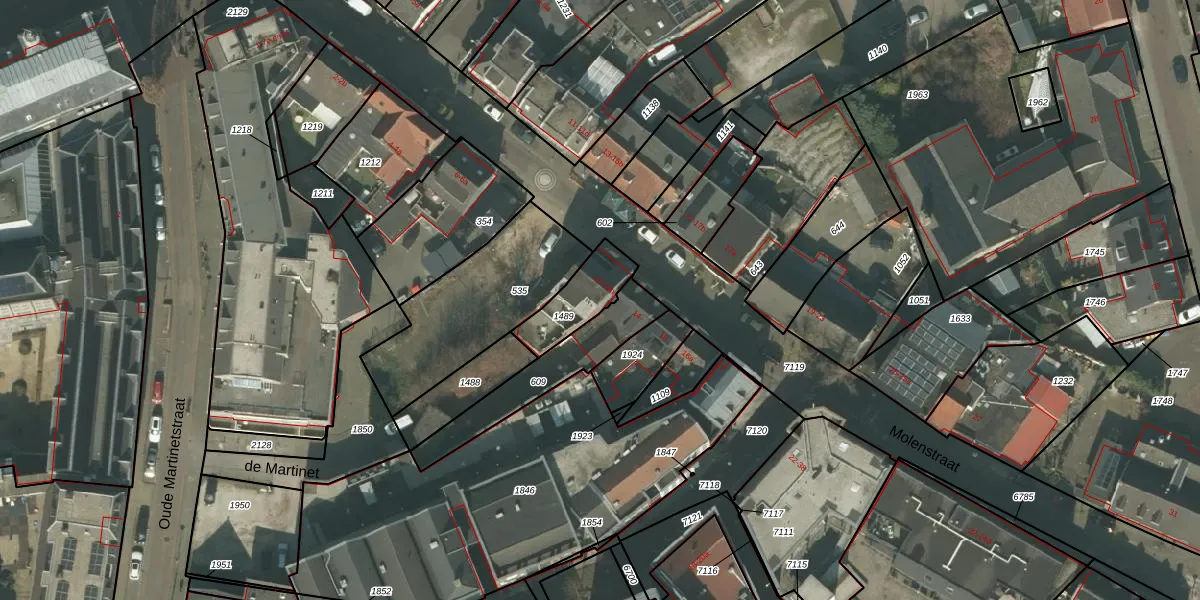 Molenstraat 12-b is gelegen op kadastraal perceel DNE00K1489. Deze kadastrale aanduiding is uniek en wordt gebruikt door het Kadaster om eigendomsrechten en andere zakelijke rechten vast te leggen. Het perceel maakt onderdeel uit van de kadastrale gemeente Deurne.