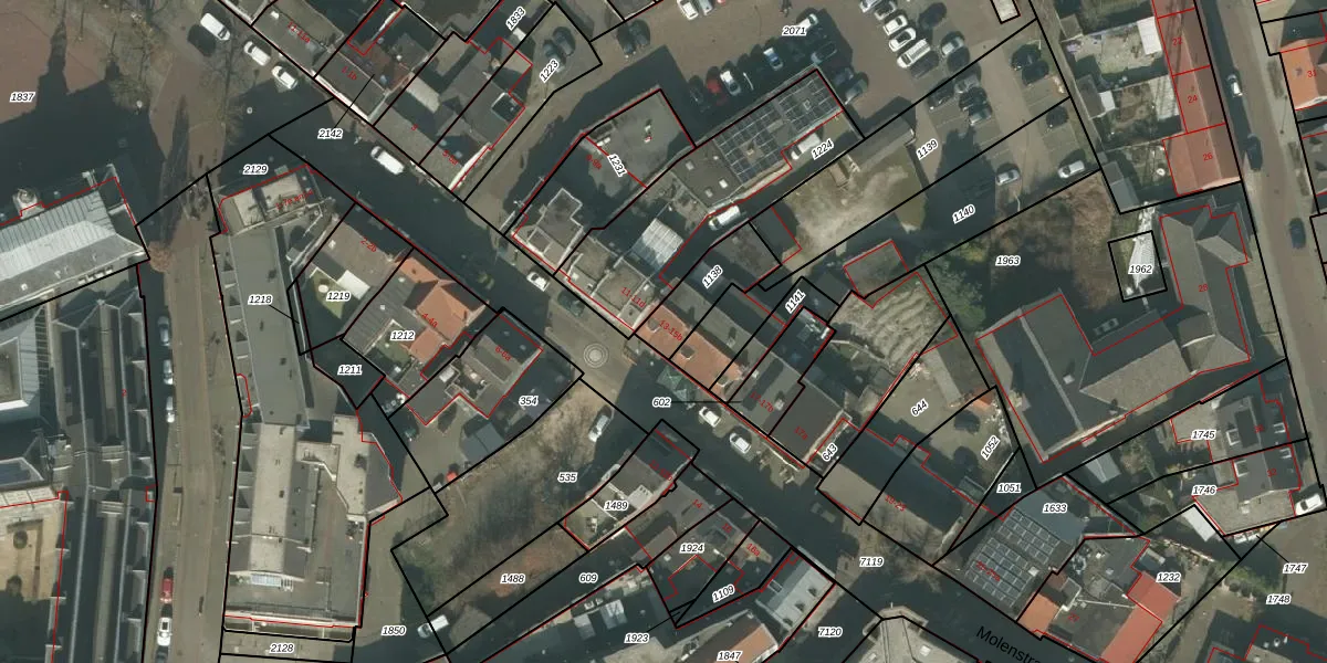 Gebruik de zoekbalk of klik op een perceel voor informatie over de adressen binnen dit perceel.