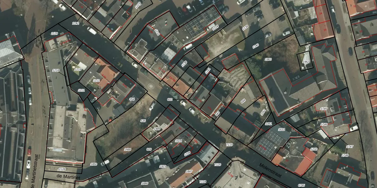 Het perceel waarop Molenstraat 15-b staat heeft een oppervlakte van 80 m². Dit is een klein perceel. De perceeloppervlakte wordt geregistreerd door het Kadaster. Gedetailleerde informatie over de maten van dit perceel kunt u vinden in het rapport Kadastrale kaart met maatvoering van Molenstraat 15-b.