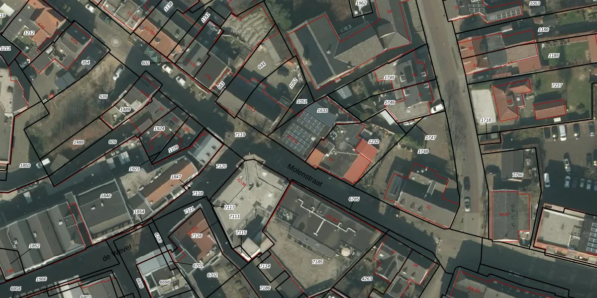 Molenstraat 25 is gelegen op kadastraal perceel DNE00K1633. Deze kadastrale aanduiding is uniek en wordt gebruikt door het Kadaster om eigendomsrechten en andere zakelijke rechten vast te leggen. Het perceel maakt onderdeel uit van de kadastrale gemeente Deurne.