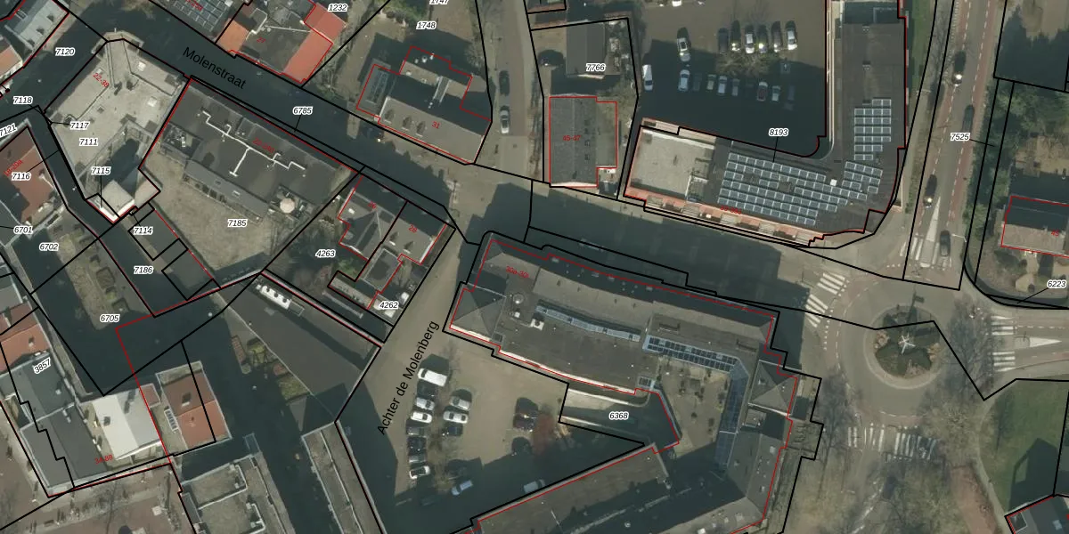 Het perceel waarop Molenstraat 30-b staat heeft een oppervlakte van 3140 m². Dit is een zeer groot perceel. De perceeloppervlakte wordt geregistreerd door het Kadaster. Gedetailleerde informatie over de maten van dit perceel kunt u vinden in het rapport Kadastrale kaart met maatvoering van Molenstraat 30-b.