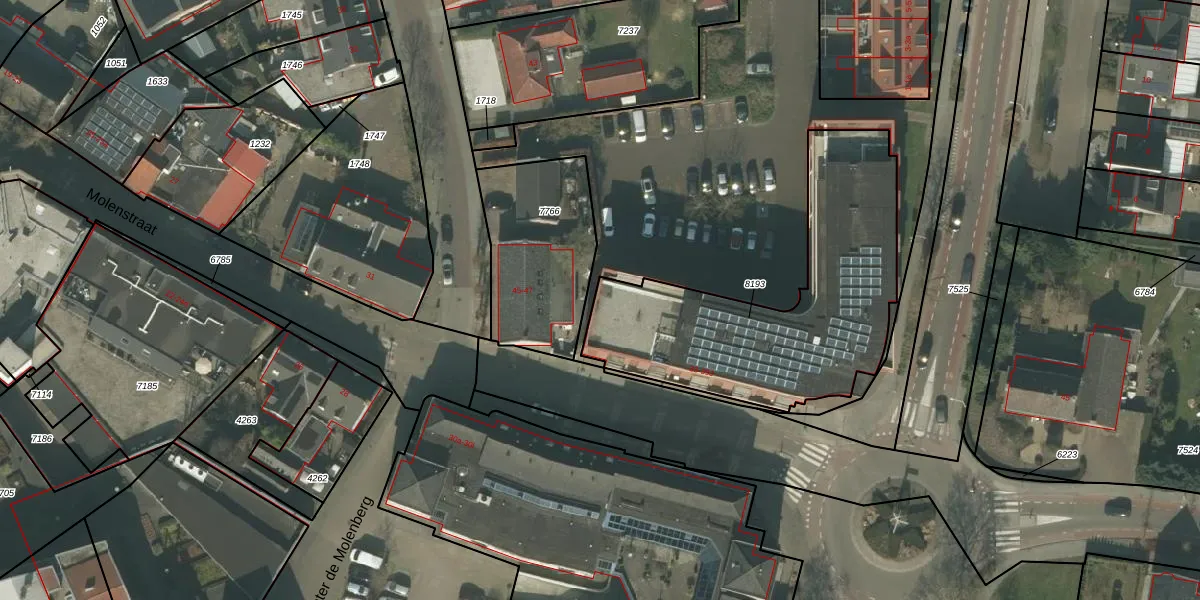 Het perceel waarop Molenstraat 37-j staat heeft een oppervlakte van 1190 m². Dit is een zeer groot perceel. De perceeloppervlakte wordt geregistreerd door het Kadaster. Gedetailleerde informatie over de maten van dit perceel kunt u vinden in het rapport Kadastrale kaart met maatvoering van Molenstraat 37-j.