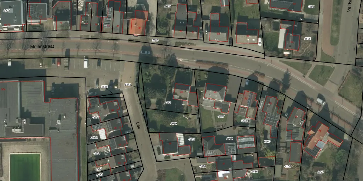 Gebruik de zoekbalk of klik op een perceel voor informatie over de adressen binnen dit perceel.