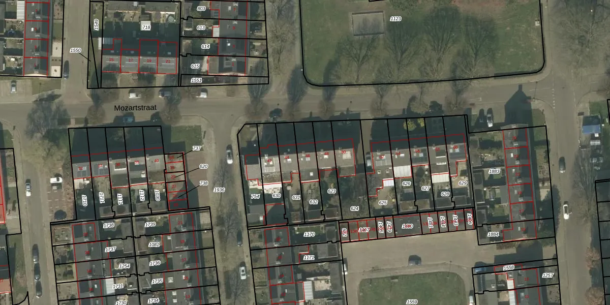Gebruik de zoekbalk of klik op een perceel voor informatie over de adressen binnen dit perceel.