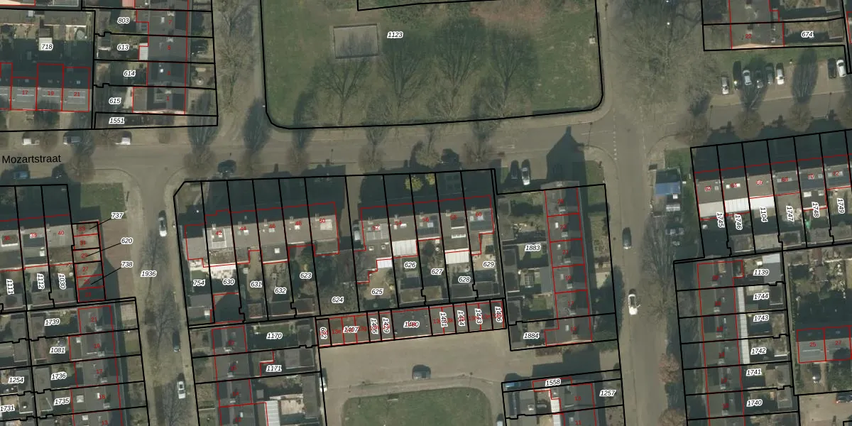 Gebruik de zoekbalk of klik op een perceel voor informatie over de adressen binnen dit perceel.