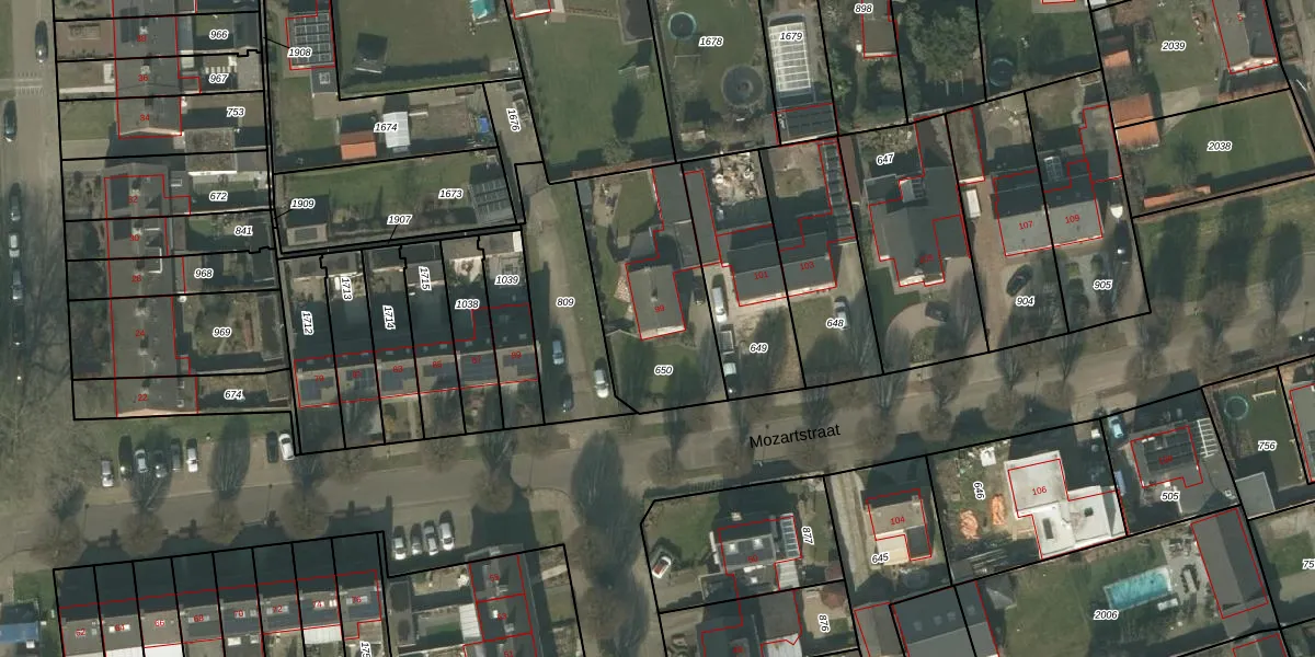 Het perceel waarop Mozartstraat 99 staat heeft een oppervlakte van 610 m². Dit is een groot perceel. De perceeloppervlakte wordt geregistreerd door het Kadaster. Gedetailleerde informatie over de maten van dit perceel kunt u vinden in het rapport Kadastrale kaart met maatvoering van Mozartstraat 99.
