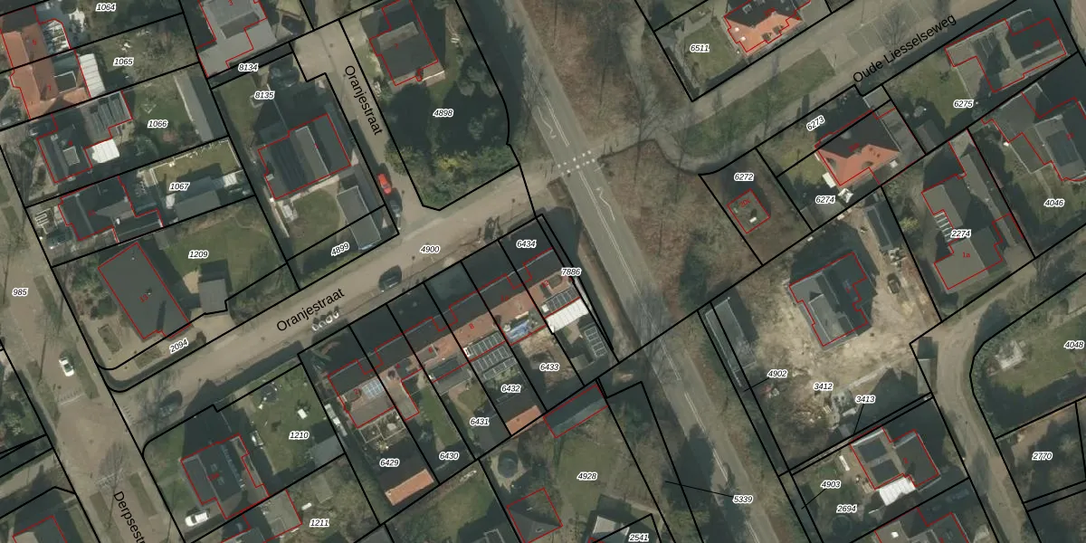 Oranjestraat 12 is gelegen op kadastraal perceel DNE00L6434. Deze kadastrale aanduiding is uniek en wordt gebruikt door het Kadaster om eigendomsrechten en andere zakelijke rechten vast te leggen. Het perceel maakt onderdeel uit van de kadastrale gemeente Deurne.