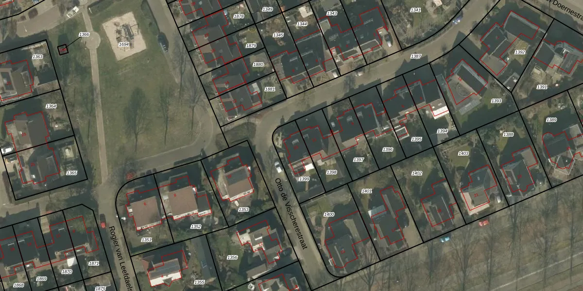 Otto de Visscherestraat 13 is gelegen op kadastraal perceel DNE00K1399. Deze kadastrale aanduiding is uniek en wordt gebruikt door het Kadaster om eigendomsrechten en andere zakelijke rechten vast te leggen. Het perceel maakt onderdeel uit van de kadastrale gemeente Deurne.
