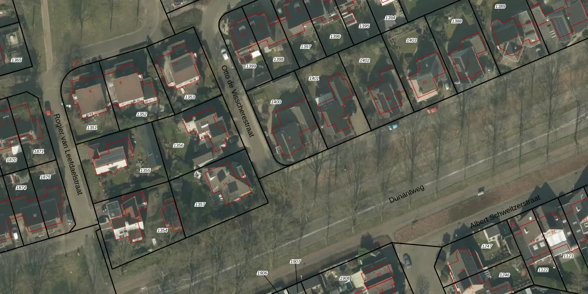 Het perceel waarop Otto de Visscherestraat 15 staat heeft een oppervlakte van 516 m². Dit is een groot perceel. De perceeloppervlakte wordt geregistreerd door het Kadaster. Gedetailleerde informatie over de maten van dit perceel kunt u vinden in het rapport Kadastrale kaart met maatvoering van Otto de Visscherestraat 15.