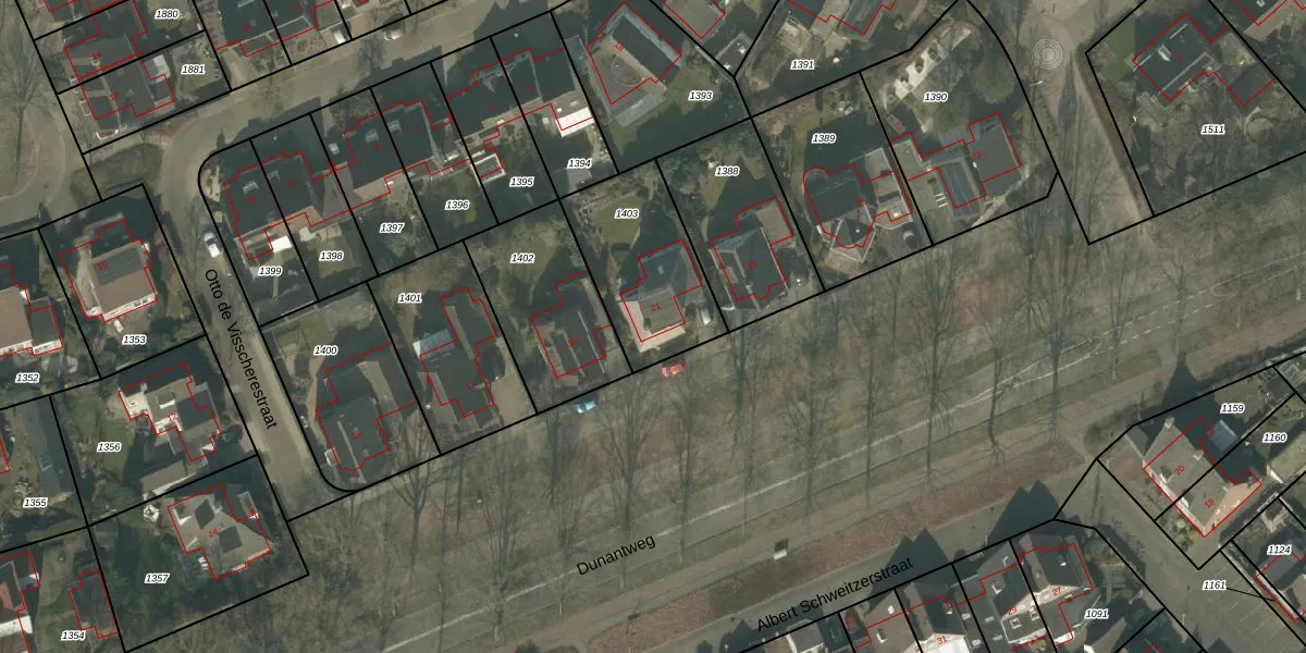 Otto de Visscherestraat 21 is gelegen op kadastraal perceel DNE00K1403. Deze kadastrale aanduiding is uniek en wordt gebruikt door het Kadaster om eigendomsrechten en andere zakelijke rechten vast te leggen. Het perceel maakt onderdeel uit van de kadastrale gemeente Deurne.