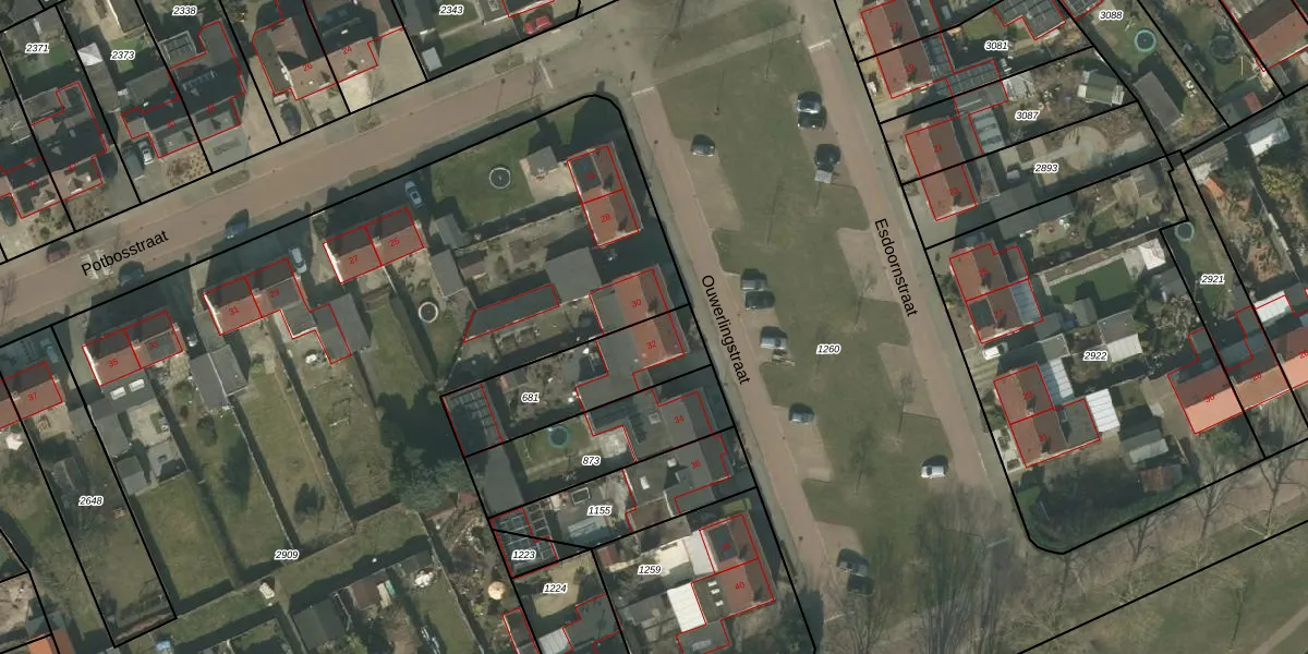 Het perceel waarop Ouwerlingstraat 32 staat heeft een oppervlakte van 409 m². Dit is een groot perceel. De perceeloppervlakte wordt geregistreerd door het Kadaster. Gedetailleerde informatie over de maten van dit perceel kunt u vinden in het rapport Kadastrale kaart met maatvoering van Ouwerlingstraat 32.