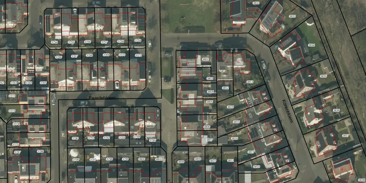 Het perceel waarop Paardebloem 17 staat heeft een oppervlakte van 190 m². Dit is een middelgroot perceel. De perceeloppervlakte wordt geregistreerd door het Kadaster. Gedetailleerde informatie over de maten van dit perceel kunt u vinden in het rapport Kadastrale kaart met maatvoering van Paardebloem 17.