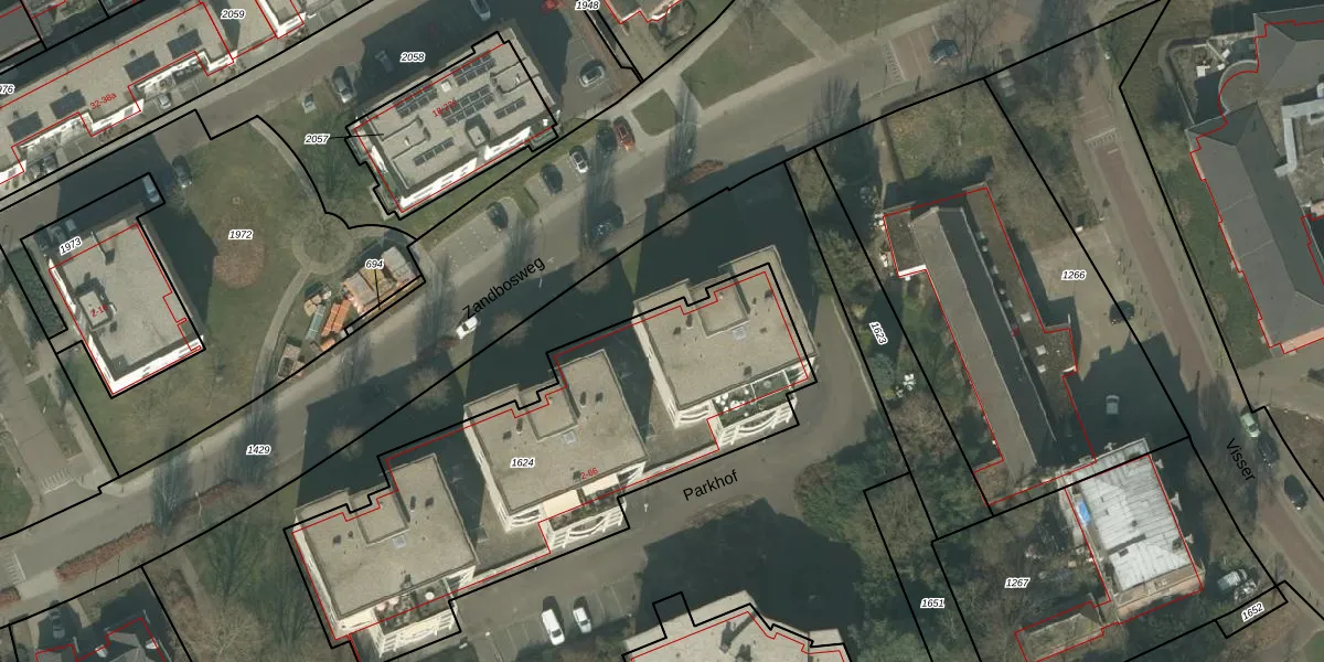 Het perceel waarop Parkhof 14 staat heeft een oppervlakte van 1980 m². Dit is een zeer groot perceel. De perceeloppervlakte wordt geregistreerd door het Kadaster. Gedetailleerde informatie over de maten van dit perceel kunt u vinden in het rapport Kadastrale kaart met maatvoering van Parkhof 14.