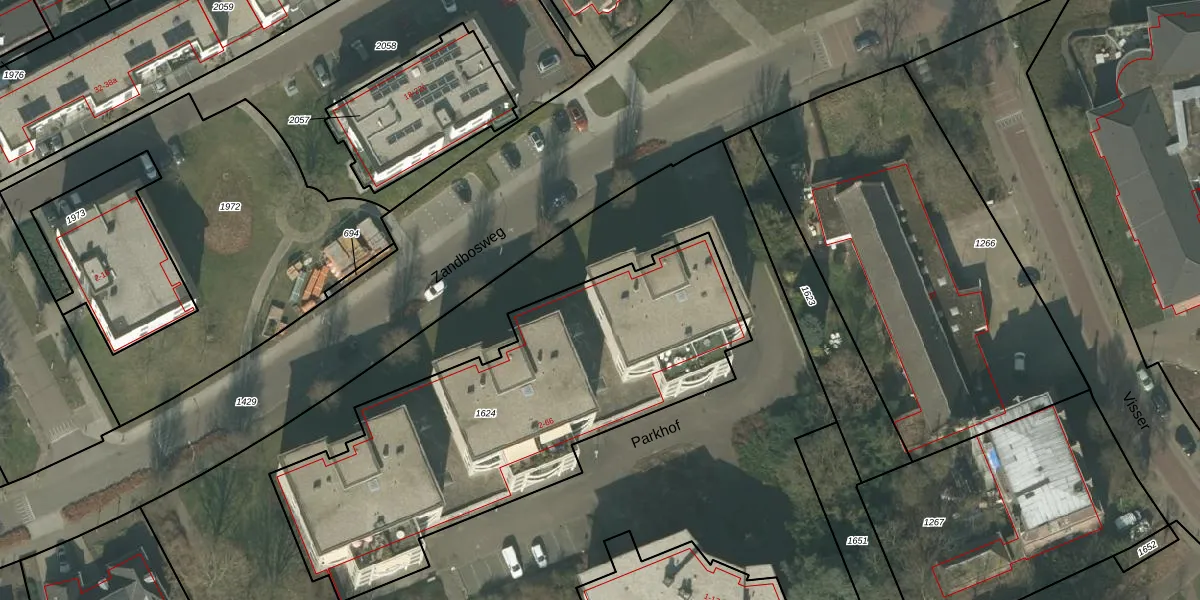 Het perceel waarop Parkhof 16 staat heeft een oppervlakte van 1980 m². Dit is een zeer groot perceel. De perceeloppervlakte wordt geregistreerd door het Kadaster. Gedetailleerde informatie over de maten van dit perceel kunt u vinden in het rapport Kadastrale kaart met maatvoering van Parkhof 16.