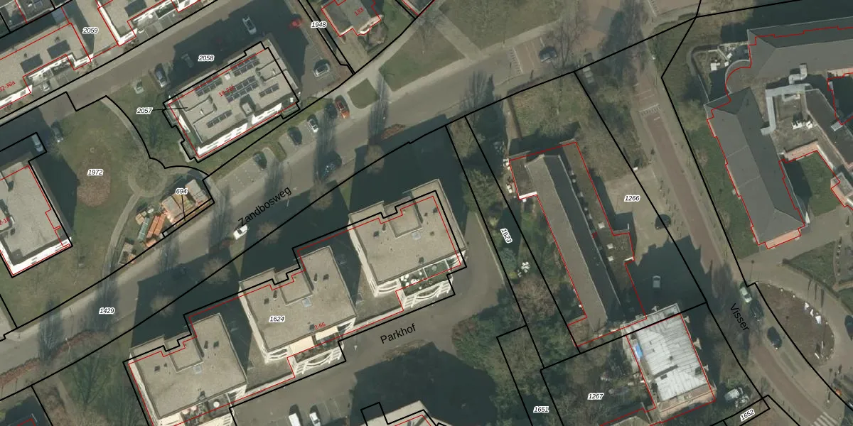 Het perceel waarop Parkhof 2 staat heeft een oppervlakte van 1980 m². Dit is een zeer groot perceel. De perceeloppervlakte wordt geregistreerd door het Kadaster. Gedetailleerde informatie over de maten van dit perceel kunt u vinden in het rapport Kadastrale kaart met maatvoering van Parkhof 2.